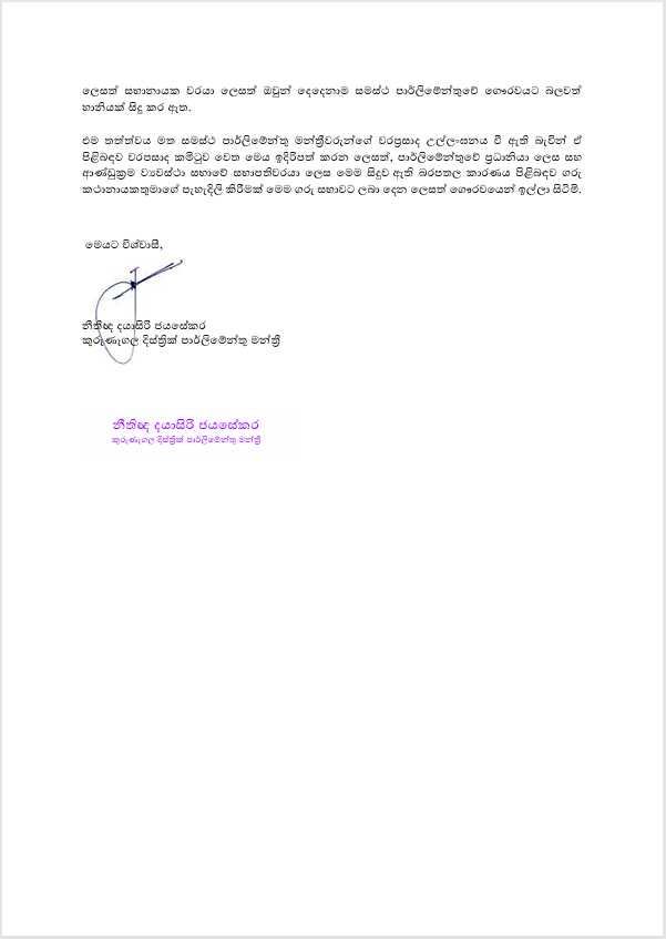 මෙම තත්ත්වය හමුවේ, මහාචාර්ය දිනේෂා සමරරත්න මහත්මිය ද වහාම දිවුරුම් ප්රකාශයක් මගින් කථානායකවරයාට සිය විරෝධය පළ කර ඇත.